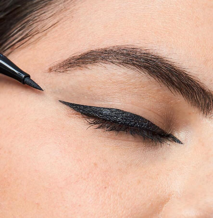Delineá suavemente con lápiz café o negro y elegí la Máscara según el efecto deseado: