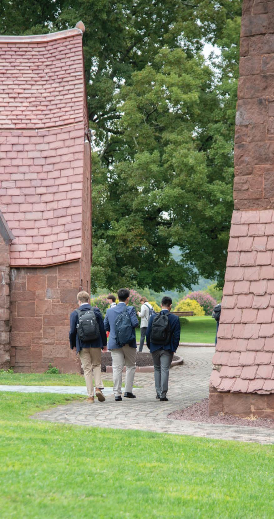 Adolescence is a time of selfdiscovery, and the 860-acre oasis that is the Avon Old Farms School campus is intentionally and purposefully designed to be the best environment for boys to make their discoveries. Trail-clearing with the Nimrod Club at Beaver Pond can awaken a love for the outdoors. Joining a sub-varsity sports team can introduce teens to an eventual lifelong hobby. Walking through the quad has inspired alumni to pursue architecture,