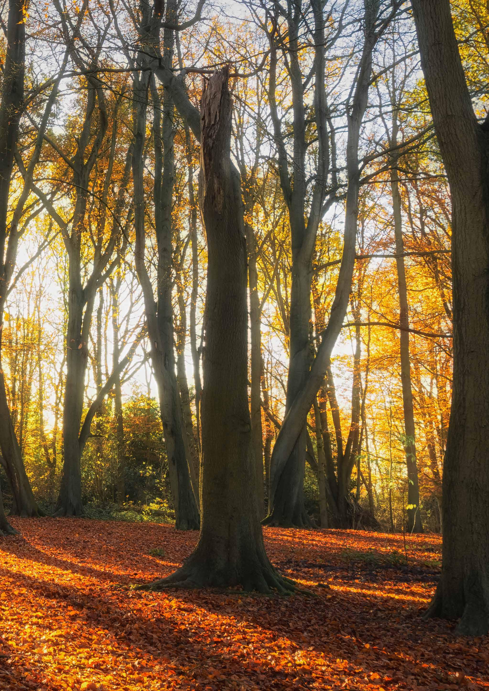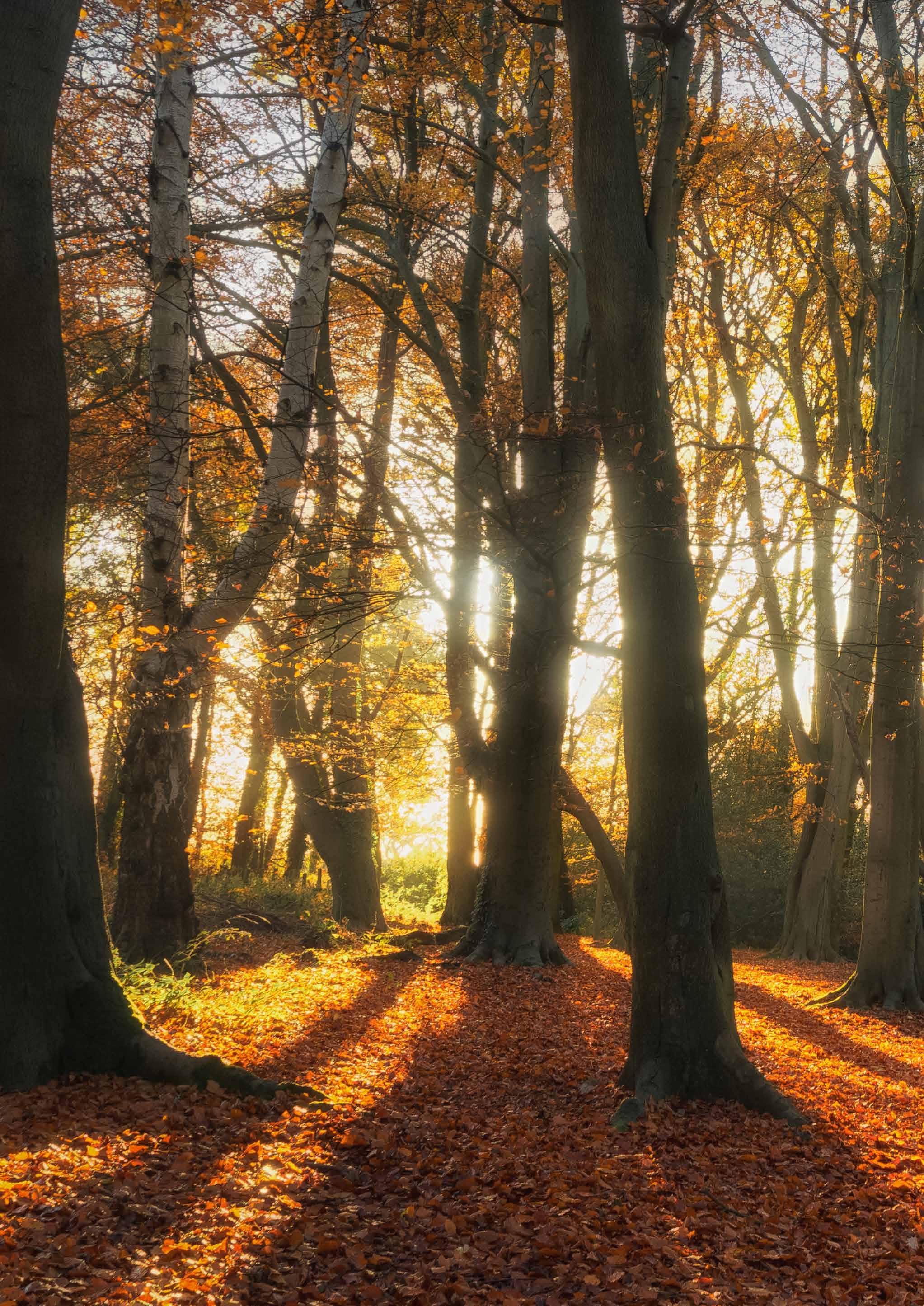 Beech woodland is well worth a visit in autumn with its vibrantly coloured leaves, soft, muted sounds and the smell of damp earth.