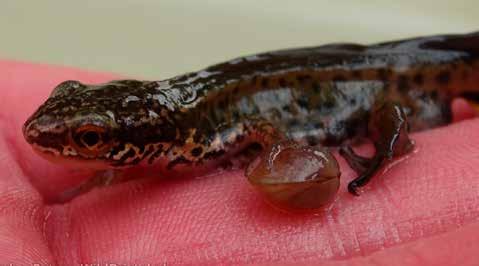 As semiaquatic organisms, newts spend a lot of their time outside the pond. Leaving damp woody piles, uncut grassy areas, leaf litter and rocks provides cover for hibernation and feeding grounds for your local newts.
