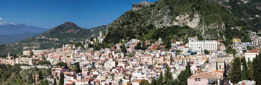 esplêndida e as paisagens lunares que podem ser vistas ao longo do caminho também são esplêndidas. Durante séculos, o vulcão criou um lugar onde natureza, cultura e história se uniram para dar origem a um lugar único no mundo. Almoço numa casa rural no sopé do Etna onde, além de desfrutar de uma refeição típica e genuína, poderemos provar o vinho Etna de produção própria. Continuação de nossa rota para Taormina. A cidade está localizado no cume da pitoresca rocha do Monte Tauro (204m. Altitude). Tempo livre para compras, para descobrir as românticas ruas da cidade ou para visitar o famoso Teatro Grego, de onde poderá desfrutar de um magnífico panorama do Etna e do Mar Jônico. Retorno a Catania (Jantar Opção Pacote de Refeições) Acomodação
