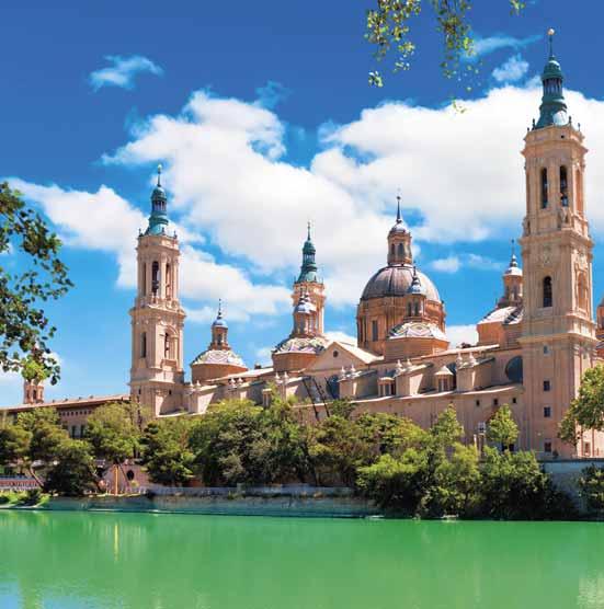 SEGUNDA-FEIRA: BARCELONA - ZARAGOZA - MADRI Café da manhã. Saída para Zaragoza, cidade da Basílica de Nossa Senhora do Pilar, padroeira da Hispanidade, onde segundo a lenda a Virgem apareceu a Santiago el Mayor e como testemunho de sua visita deixaria uma coluna de jaspe popularmente conhecida como “El Pilar”. Hoje é o maior templo barroco da Espanha, destacando em seu interior os afrescos de Goya e Francisco Bayeu, entre outros. Continuação de nosso recorrido para a capital da Espanha, Madri. À noite, se desejar, pode realizar um agradável passeio noturno opcional onde poderá desfrutar da animada vida noturna de Madri e saborear umas típicas tapas. Acomodação
