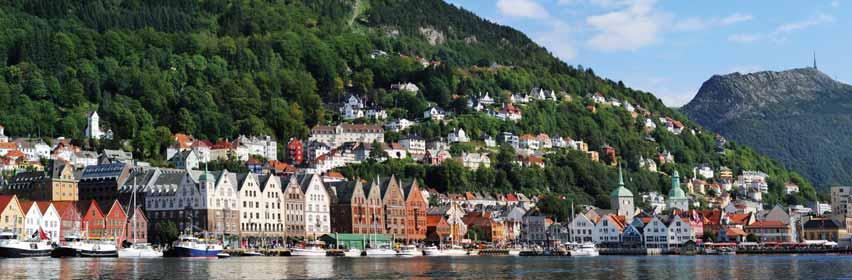 fundidade em alguns lugares. Desembarque em Gudvangen, e tempo livre. Tambén, se desejar, você pderá fazer uma visita opcional do Trem de Flam, Impressionante obra de engenharia, onde graças a um audacioso traçado ferroviário, que após atravessar cada um dos túneis que constituem o percurso, encontrará paisagens cada vez mais espectaculares, nas quais se combinam rios, quintas de montanha e cascatas. Continuação para Bergen, capital da Noruega até 1830, e hoje a segunda cidade do país. Jantar e acomodação