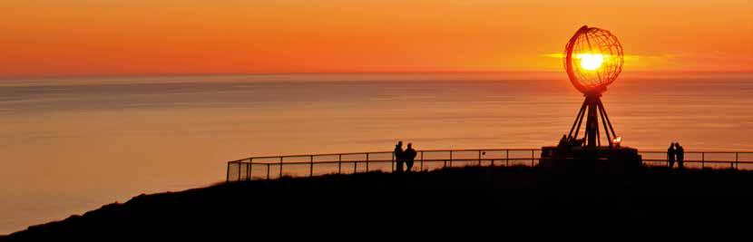 Café da manhã. Saída para o norte, atravessando os fiordes de Ulls e Lyngen a bordo de mini-cruzeiros, ladeados por quase 2.000 m. alta, geleiras e neve perpétua, até chegarmos ao mirante Gildetun, de onde desfrutaremos de uma vista espetacular. Continuaremos subindo em direção à tundra de Sennaland, charnecas castigadas por ventos muito fortes, contornaremos o fiorde Porsanger e atravessaremos o túnel subaquático Kobfjord e chegaremos à ilha de Magerøya, onde está localizado o Cabo Norte. Chegada ao hotel. Ao pôr do sol excursão incluída ao mítico Cabo Norte, o ponto mais setentrional do continente, onde receberemos o certificado e desfrutaremos de um jantar assistindo ao pôr do sol sobre o Oceano Ártico. Em julho um dia se fundirá com o outro e o sol não se esconderá no mar. Em agosto não escurecerá, é a noite branca, o Sol da Meia-Noite. Retorno ao hotel e acomodação