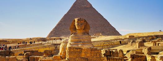 Desayuno. Por la mañana, visita panorámica a las Pirámides de Guiza, conjunto formado por las pirámides de Keops, Kefrén y la Gran Esfinge. Tarde libre. Alojamiento en El Cairo.