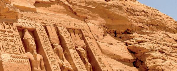 Junto al lago Nasser, Abu Simbel, está formado por los templos tallados en roca de Ramsés II y su primera esposa Nefertari.