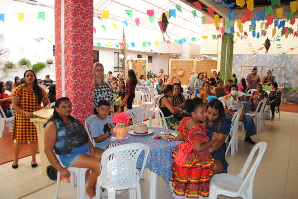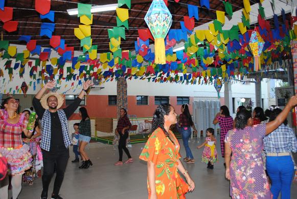 O evento contou com comidas típicas, barracas da pescaria, do beijo e o tradicional forró pé de serra. A festa também celebrou os aniversariantes dos meses de maio e junho.