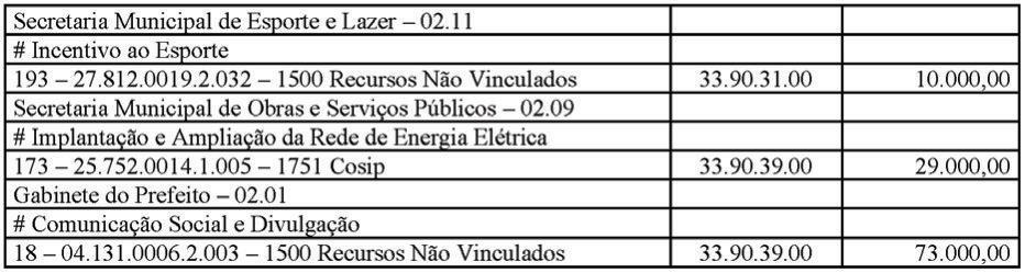 Art. 1º - Fica aberto o Crédito Adicional Suplementar por anulação no valor de R$ 112.000,00 (cento e doze mil reais) a funcional programática da unidade orçamentária, segundo a categoria econômica abaixo indicada: Art. 2º - Para permitir a abertura de Crédito Adicional Suplementar mencionado no artigo anterior no valor de R$ 112.000,00 (cento e doze mil reais) será utilizada,
