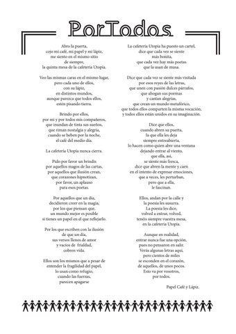 PorTodos Abro la puerta, cojo mi café, mi papel y mi lápiz, me siento en el mismo sitio de siempre, la quinta mesa de la cafetería Utopía.