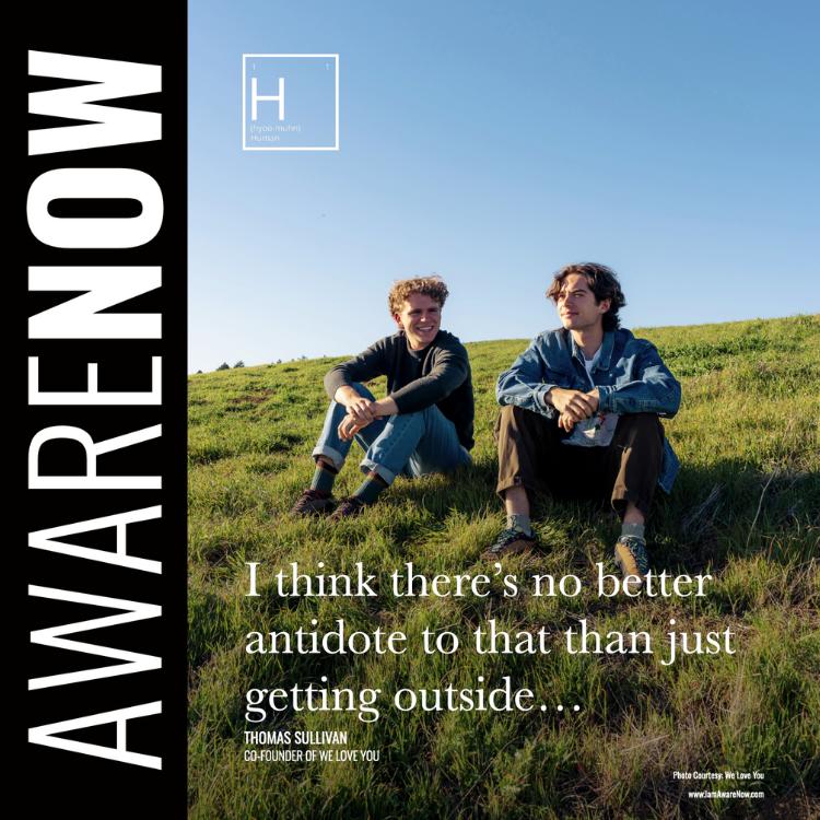THOMAS: Our whole lives leading up to starting 'We Love You' and continuing with it, we've always had our own struggles with anxiety, depression and mental health. Around that time we, like everyone I think during COVID, really felt it and really needed to find a way to deal with it, especially because there were no distractions. You were just alone in your home or, for us, off and out in a field somewhere. And through nature and through all our big conversations, we just found a way to deal with it and a way to think about things. We think about things slightly differently. I think it's always changing. We grew up in this place on the internet where so much of it is making us more anxious and feeding into that anxiety and depression and this feeling of us not being good enough. We're not doing the right things or not having the perfect life that we so often see online. At the same time, especially during COVID, you could see the world being shaped in that same way. You could see the general discourse getting angrier and more afraid and more depressed. There's this feeling in the world where it seems like you're going the wrong way, and we think a lot of that comes from the informational space we live in. We're like, okay let's try to do our best. We're both artists and want to make something that could push back against that or be an alternative to that.