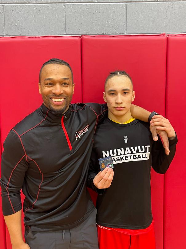 When his team is not playing, Jacob is leading the cheers for the female Nunavut team During his own games, Jacob exemplifies team unity in his support of teammates and maintains a positive attitude throughout the game