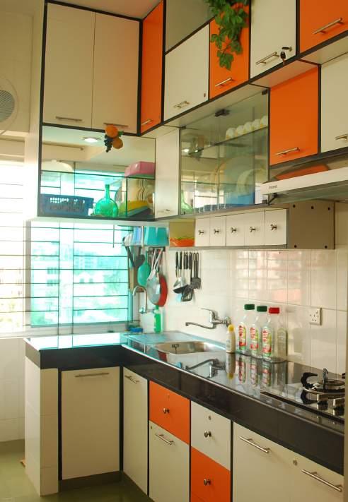 The kitchen was open,well-illuminated and vibrant with orange-white compostion inspired by artist Mondri-an’s paintings (Fig 86a).