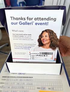 It’s important to emphasize that this test does not replace recommended singlecancer screenings. Mammograms, colonoscopies and others are still the gold standard of care and all should follow guidelines for their age group and risk factors. “This test is a snapshot of where you are today,” adds Tyler. “A negative test provides peace of mind, but is not a lifetime pass.”