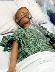 very bright.Facilitators manipulate medical emergency simulations in real-time. Child manikin is used for pediatric care research and education. By Katie Hill, MD