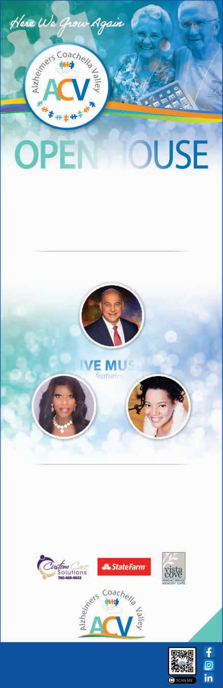 Come celebrate Alzheimers Coachella Valley's expansion to its new location. All are welcome to this free event featuring live music, food and festivities with host Patrick Evans and entertainment by Keisha D and Sweet Baby Jai. 75105 Merle Street, Ste. 800, Palm Desert. 5:30-7:30p. RSVP by October 25 to Priscilla@cvalzheimers.org or call (760) 776.3100.