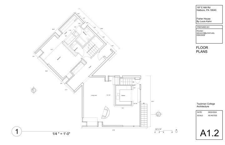 The Fisher House by Louis Khan was selected by our class to be the subject of the semester’s construction drawings. Each drawing building upon the others, until we had a clear understanding of construction sequence and representation within drawings.