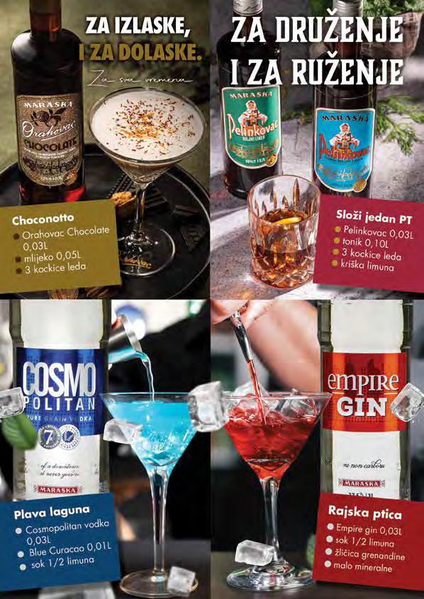 Narudžba proizvoda na telefon 01 55 62 000 50 3 850158 406080 Orahovac elegance 0,7 l MR11029, 6 kom/karton 3 850158 406066 Orahovac čutura 0,7 l MR11143, 6 kom/karton 3 850158 406004 Orahovac 1 l MR11030, 6 kom/karton -13% 45,37 50,39 kn *+0,50 povratna naknada -6% 62,61 65,86 kn *+0,50 povratna naknada -10% 59,28 63,99 kn *+0,50 povratna naknada 3 850158 406103 Orahovac premium 0,7l MR11063, 6 kom/karton -8% 88,37 95,03 kn *+0,50 povratna naknada 3 850158 4 Orahovac s čokoladom 1l MR11166, 6 kom/karton 3 850158 406141 Orahovac s čokoladom 0,7l MR11167, 6 kom/karton -4% 17,91 18,58 kn 57,81 *+0,50 povratna naknada 70,80 *+0,50 povratna naknada 63,79 *+0,50 povratna naknada 89,04 *+0,50 povratna naknada 3 850158 403959 Maraschino ducale 0,1 l MR11019, 12 kom/karton 3 850158 404352 Maraschino hr 0,7 l MR11021, 6 kom/karton 3 850158 404703 Maraschino 1 l MR11024, 6 kom/karton 3 850158 404406 Maraschino Zadar 0,7 l MR11020, 6 kom/karton 3 850158 404307 Maraschino opleteni 0,5 l MR11022, 6 kom/karton 3 850158 200909 The Rebel gin 0,7 MR11048, 6 kom/karton 3 850158 200879 Gin empire 1 l MR11013, 6 kom/karton 126,44 *+0,50 povratna naknada 60,29 *+0,50 povratna naknada 3 850158 408398 Sailor’s Queen 1,0 l MR11040, 6 kom/karton 3 850158 201906 St. Simon’s bijeli rum 1 l MR11039, 6 kom/karton 58,30 *+0,50 povratna naknada 64,50 *+0,50 povratna naknada 3 850158 403041 Kruškovac Zadar 0,7 l MR11015, 6 kom/karton 51,05 *+0,50 povratna naknada 51,15 *+0,50 povratna naknada 3 850158 403102 Kruškovac Čutura 0,7 l MR11016, 6 kom/karton -4% 39,14 40,14 kn *+0,50 povratna naknada 3 850158 403607 Kruškovac lagana 1 l MR11017, 6 kom/karton JAKA ALKOHOLNA PIĆA -9% 59,42 63,99 kn *+0,50 povratna naknada -12% 45,48 50,42 kn *+0,50 povratna naknada NOVO