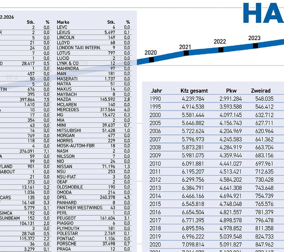 Ausgabe: 04/2026, 39. Jahrgang; Cover-Werbung: Aumovio; Medieninhaber, Anzeigenverwaltung: A&W Verlag GmbH (FN 238011 t), 3400 Klosterneuburg, Inkustraße 1-7/Stiege 4/2. OG, T: +43 2243 36840-0, UID = ATU57361312; E: redaktion@awverlag.at, I: www.autoundwirtschaft.at; Verleger: Helmuth H. Lederer (1937–2014); Geschäftsführer: Stefan Binder, MBA, M: +43 664 5285661, E: stefan.binder@awverlag.at; Verlagsleiter B2B und Chefredakteur: Prok. Gerald Weiss, M: +43 6642359044, E: gerald.weiss@awverlag.at; Chefredakteur: Mag. Heinz Müller, M: +43 664 8221660, E: heinz.mueller@awverlag.at; Chef vom Dienst: Mag. Bernhard Katzinger, M: +43 664 1244870, E: bernhard.katzinger@awverlag.at; Redaktion: Mag. Andreas Granzer-Schrödl, M: +43 664 88368584, andreas.granzer@awverlag.at; Kevin Kada, M:+43 664 4558509, E: kevin.kada@awverlag.at; Mag. Severin Karl, M: +43 664 8222221, E: severin.karl@awverlag.at; Petra Mühr, M: +43 664 4699598, E: petra.muehr@awverlag.at; Johannes Richter, E.MA, M: +43 664 78976571, E: johannes.richter@awverlag.at; Roland Scharf, M: +43 664 1007939, E: roland.scharf@awverlag.at; Dieter Scheuch, M: +43 664 2359052, E: dieter.scheuch@awverlag.at; redaktionelle Mitarbeit: Dr. Fritz Knöbl; Werner Überall; Anzeigenmarketing: Alexander Keiler, M: +436648229487, E: alexander.keiler@awverlag.at; Daniel Löw, M: +43 664 789 76 570, E: daniel.loew@awverlag.at; Winfried Rath, MSc, M: +4366488368585, E: winfried.rath@awverlag.at; Leitung Administration: Beate Vogl, T: +43 2243 36840, DW: -531, E: beate.vogl@awverlag.at; Grafik: graphics - Alexander Jonas KG, 3400 Klosterneuburg, Inkustraße 1-7/4/2.OG, E: a.jonas@jonas.co.at; Druck: Ferdinand Berger & Söhne GmbH, 3580 Horn, Wiener Straße 80; Bezugspreis: Jahresabonnement (10 Ausgaben) Inland: € 85,– exkl. 10 % MwSt; Ausland: € 99,–; Bankverbindung: Bank Austria, UniCredit Group, IBAN: AT63 1200 0518 4409 7901, BIC: BKAUATWW; Gerichtsstand: LG Korneuburg; verbreitete Auflage: 11.000 Stück; Erscheinungsweise: 10-mal jährlich mit Supplements laut Mediadaten 2026; grundlegende Richtung: unabhängige Fachzeitschrift für alle, die vom Kraftfahrzeug leben; Manuskripte: Für unverlangt eingesandte Manuskripte und Fotos wird keine Haftung übernommen. Sie werden nur retourniert, wenn Rückporto beiliegt. Schwesterpublikationen Österreich: u. a. AUTO BILD Österreich, AUTO-Information, FLOTTE, FAMILIENAUTOS, automotive GUIDE; Schwesterpublikationen Schweiz: AUTO&Wirtschaft Schweiz, AUTO BILD Schweiz, aboutFLEET Aus Gründen der besseren Lesbarkeit wird auf die gleichzeitige Verwendung der Sprachformen männlich, weiblich und divers (m/w/d) verzichtet. Die Personenbezeichnungen gelten gleichermaßen für alle Geschlechter.