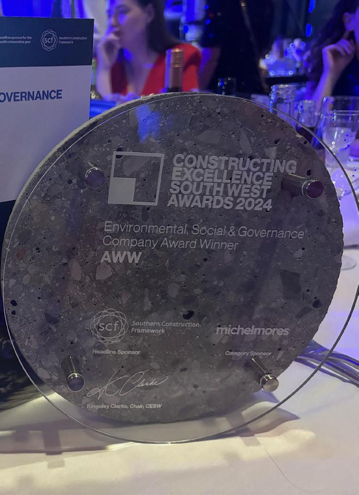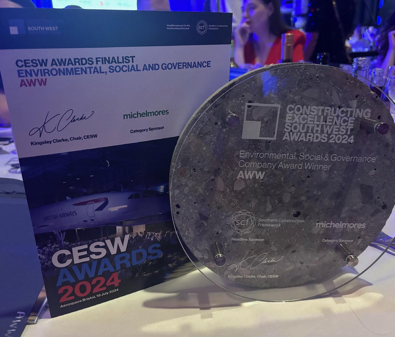 Making it a record breaking award year; AWW has won the Constructing Excellence South West Environmental, Social and Governance Award 2024.