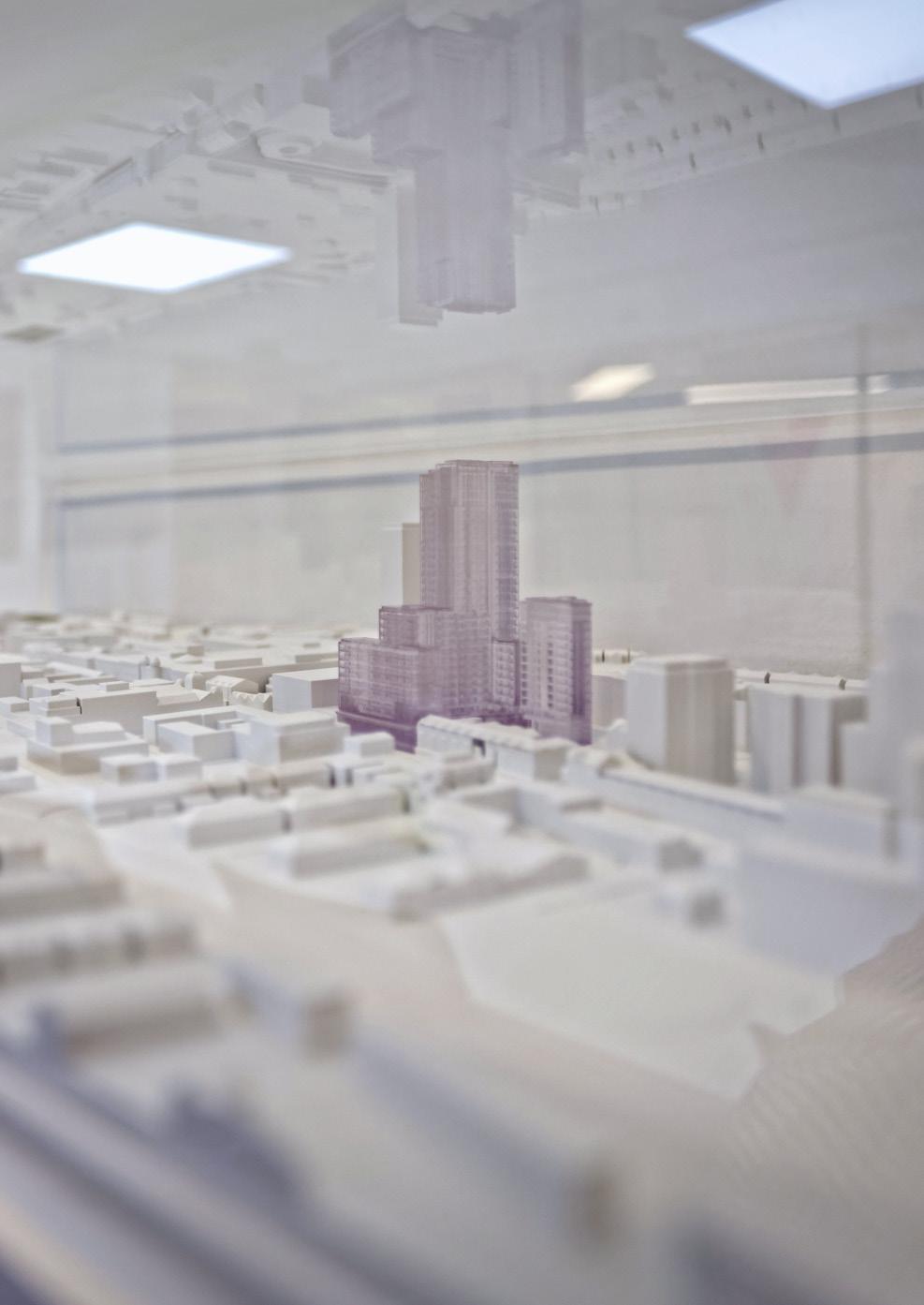The design for the masterplan consists of designs for two buildings and a high quality public realm design for the entire site.
