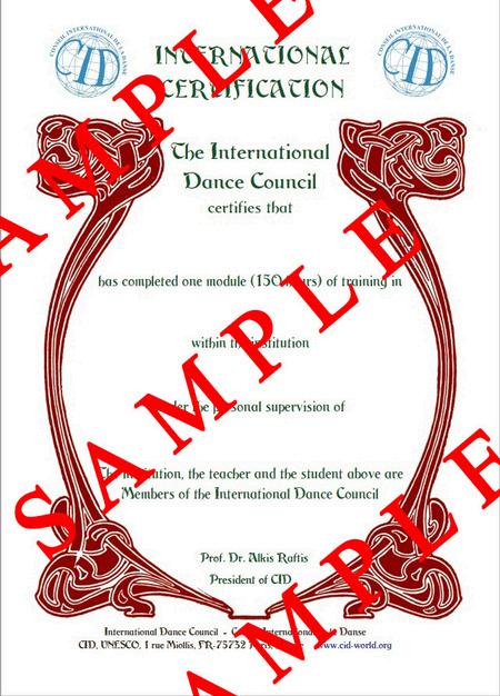 El Consejo Internacional de Danza CID, socio oficial de la UNESCO, valida la enseñanza ofreciendo la Certificación Internacional de Estudios de Danza.