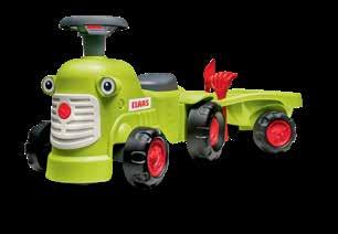 - CLAAS traktor vintage kivitelben pótkocsival - kormányozható, kürttel és ergonomikus járást segítő rúddal - méretek: kb. 95 x 31 x 45 cm