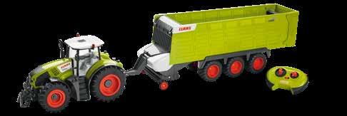 AXION 870 + CARGOS 750 FSC-tanúsítvánnyal rendelkező fából készült traktor, billenthető pótkocsi, szalmabálákkal, az utánfutó fedele nyitható, szabadonfutó. Gyerekeknek 12 hónapos kortól