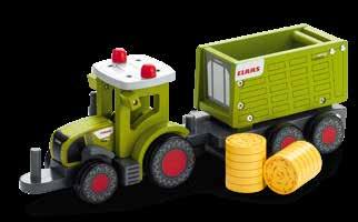 AXION 870 + ÁLLATSZÁLLÍTÓ PÓTKOCSI FÁBÓL Gyerekeknek 12 hónapos kortól. FSC-tanúsítvánnyal rendelkező fából készült traktor, billenthető pótkocsi, szalmabálákkal.