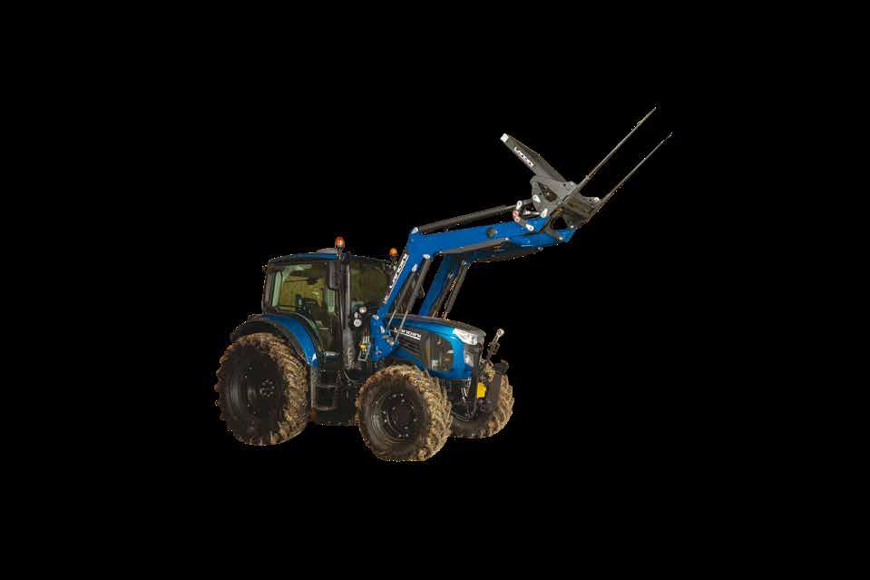 Homlokrakodóval, ásóval és dupla tengelyes pótkocsival. Állítható ülés.