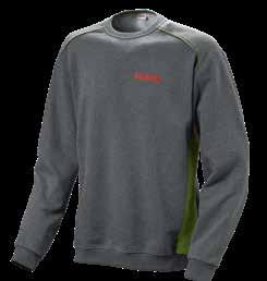 Kerek nyak, optimális mozgásszabadság, hímzett CLAAS logó, elasztikus nyújtószalagok az ujjakon, a szegélyen és a nyakon, robusztus / kopásálló 65% pamut, 35% poliészter