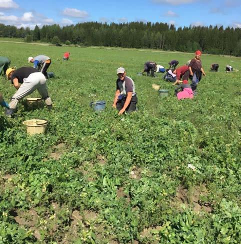 A vetési szezon kezdetén az idő általában elég csapadékos. „Igyekszünk elvetni, amennyit bírunk úgy, hogy az összes fajtából vessünk – mintegy 100–150 hektáron. Egyes fajtákat filccel takarunk le, hogy védjük őket.” Amikor az első fajta megérik, sok segítő kézre van szükség. A hüvelyek viszonylag kisebbek, így nehezebb őket betakarítani. „Fontos számunkra, hogy hatékonyak legyünk. Így az első pár héten nem áll módomban 20 fővel növelni a létszámot. Jó döntéseket kell hoznunk, hogy a betakarításból a legtöbbet hozzuk ki” – mondja Vesa Tammilehto. Hogy a friss zöldborsó folyamatos utánpótlását biztosítsuk, minden második nap mintegy tíz hektárt vetünk be a főszezonban. Kulcsfontosságú az optimális mennyiség megállapítása, amely betakarítható és el is adható.