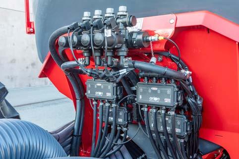 szivattyúvezérlő egység és egyedi sorfigyelő egység is el van helyezve. A szekcionális kapcsolást egy olyan rendszer végzi, amelyet a jövőben teljes mértékben integrálnak a HORSCH elektronikába. A szekcionális szelep vezérlése lehetővé teszi a folyékony műtrágya kijuttatásának kikapcsolását. A 3 pontos függesztésű szegmensben a folyékony műtrágyázó berendezés opcionális tartozék, pl. a Leeb CT (elülső folyadéktartály) tartozékaként.