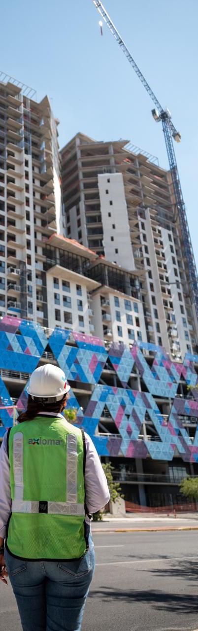 Arquitecta, 33 años, originaria de Culiacán Sinaloa y orgullosamente Axioma, actualmente participo en el proyecto de usos mixtos Cuatro Ríos bajo el cargo de Gerente Junior en la unidad de Centro Comercial, lo que más me apasiona de mi trabajo en Axioma es sin duda la gestión y dirección de proyectos, mi mayor satisfacción en la construcción, es ver consolidado un proyecto hasta el último detalle, además de disfrutar el éxito del mismo como propio.
