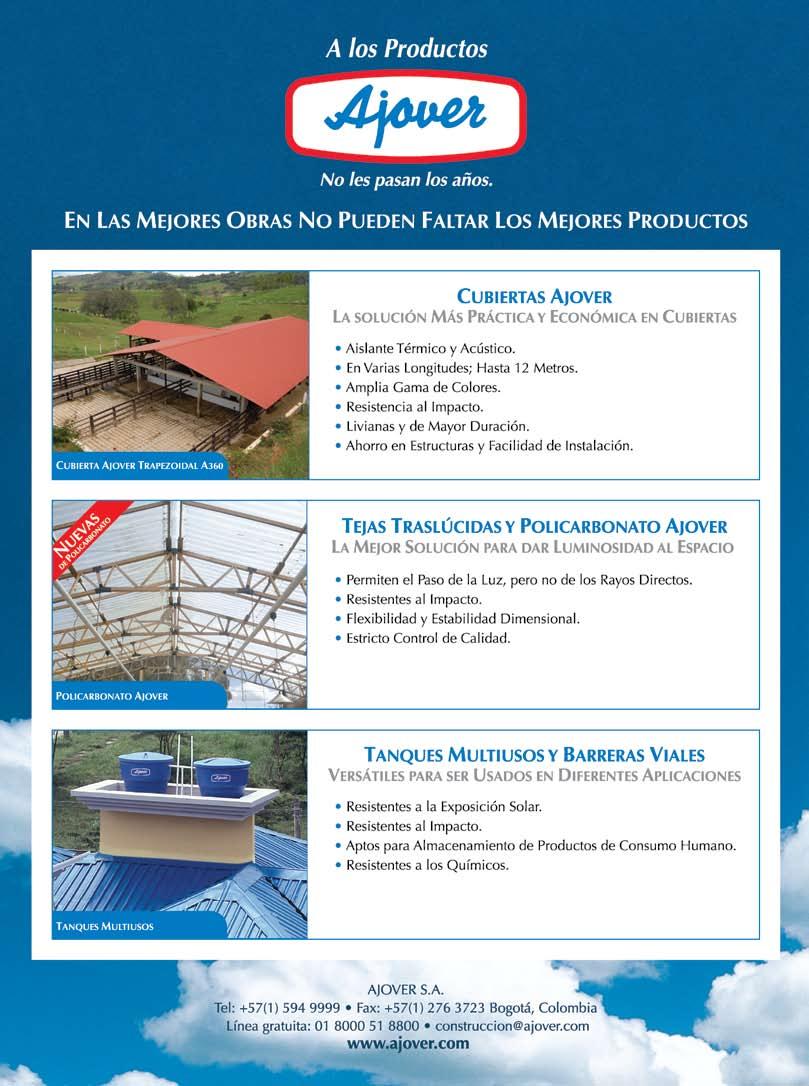 Al respecto, la empresa Ajover aclara los beneficios de este tipo de materiales. “Las Tejas Traslúcidas de Ajover permiten el paso de la luz, pero no de los rayos directos. Son resistentes a la exposición solar y al impacto. Poseen flexibilidad y estabilidad dimensional. Su producción está sujeta a un estricto control de calidad. Las Tejas Traslúcidas Ajover están certificadas con la Norma Internacional NTC-ISO 9001:2000”, especifica la empresa.