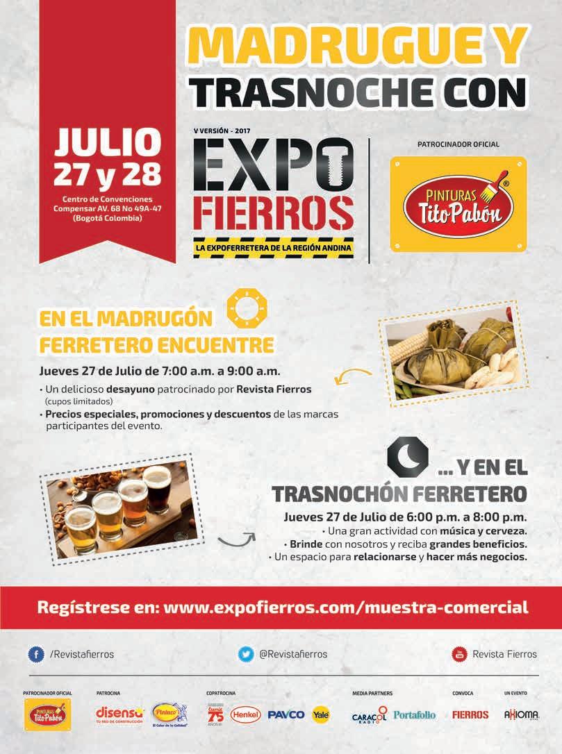 Expo FIERROS, Pinturas Tito Pabón, el evento que representa una muestra comercial única para el sector ferretero, llega este 27 y 28 de julio a su V edición. Con más de 90 expositores, que componen una agenda académica integral, Expo FIERROS se ha convertido en el escenario ideal para formar a los profesionales ferreteros. Conozca toda la información de la expoferretera de la región Andina en www.expofierros.com