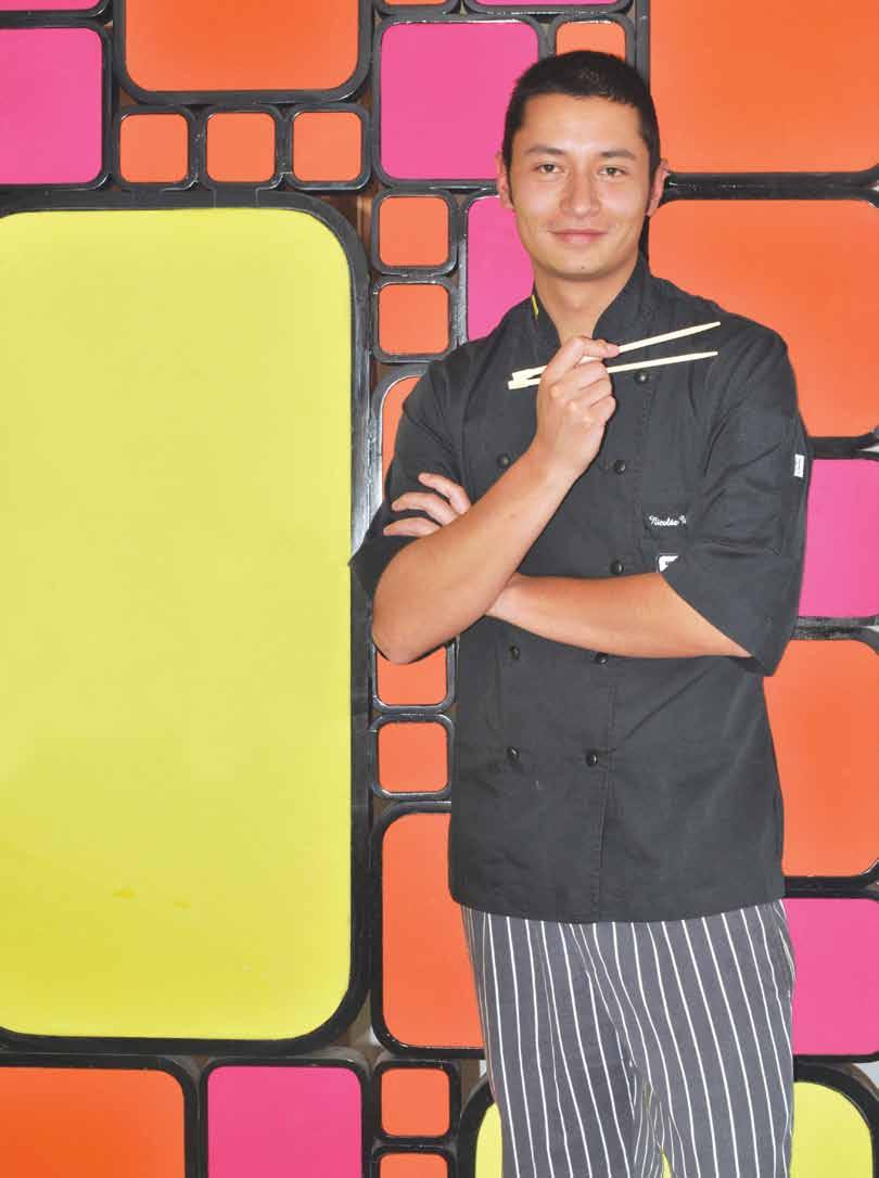 tan solo 24 años, este chef ya es propietario de la marca Wok’n roll con oferta de sushi y preparaciones al wok. La historia de Nicolás, en la ciencia de los fogones, comenzó en 2005 cuando viajó a Buenos Aires a estudiar cocina en el Instituto Argentino de Gastronomía. Mientras tanto, estuvo haciendo prácticas en una empresa de catering, en donde atendía a grupos numerosos, allí valoró el hecho de trabajar en línea y de planear la producción para más de 400 personas. También estuvo en un restaurante de especialidad mediterránea, “la experiencia fue muy valiosa porque la rotación era muy alta y pude vivir, en carne y hueso, el movimiento de enviar comandas rápidamente”. Regresó a Colombia con la idea de montar su propia empresa y así lo hizo. Fundó 3deCAT para prestar el servicio de alimentación en eventos sociales; su mejor experiencia fue la atención de artistas durante conciertos, así satisfizo las exigencias de bandas internacionales. “Orishas fue uno de los mayores retos ya que sus integrantes tenían diferentes dietas: vegetariana, vegana y de comida de mar, entonces pude desarrollar un menú variado y complacerlos”, afirma Nicolás. A finales de 2009 se unió con una amiga de la infancia, administradora de empresas, quien trajo la idea de ofrecer el sushi con el formato take away que dio nacimiento a Wok’n roll. Entre sus metas está el hacer de esta marca una cadena de restaurantes, sin descartar la idea de tener su propio establecimiento a manteles con cocina de autor, más adelante.