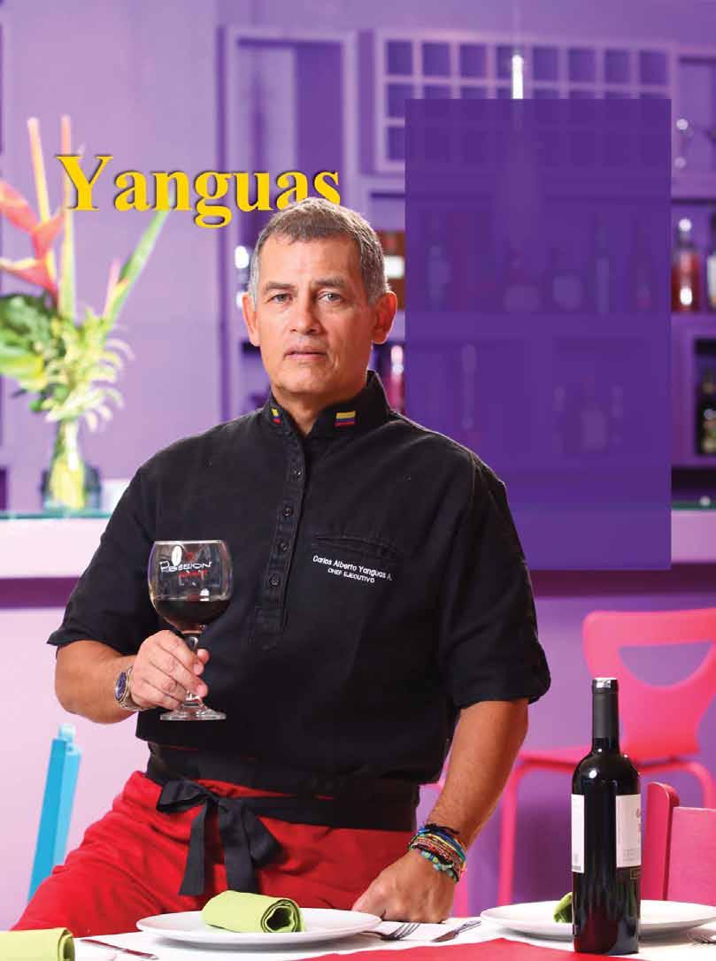 la cultura del pacífico, Carlos Yanguas ha sido un deportista de alto rendimiento que, a partir de la natación y el buceo, tuvo la oportunidad de descubrir esa región colombiana, su tradición y gastronomía. Se graduó en arquitectura y realizó varios viajes a Europa en donde encontró su gusto por la cocina, conoció diferentes tendencias culinarias y comenzó a estudiarlas. Finalmente, viajó a Argentina a educarse en cocina en Mausi Sebess; al terminar la carrera, volvió a Colombia y abrió su restaurante Passión, en Cali. Desde hace ocho años se ha dedicado a explorar los ingredientes de la región pacífica y a plasmar sus investigaciones en las diferentes recetas que ofrece en su restaurante. “Siempre quiero cambiar las cosas, estoy innovando constantemente; la misma receta la cambio mucho, la voy evolucionando”, comenta.