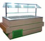 Las barras para ensaladas permiten conservar la frescura de los productos por más tiempo mientras los mismos se exhiben y su bodega de refrigeración en la parte inferior permite conservar productos prelistos para reabastecer.