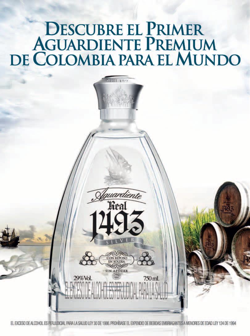 Aguardiente Real 1493 es el primer aguardiente Premium de Colombia y del mundo. Al ser reposado en solera da como resultado un licor superior, sin azúcar y con hasta un 96 por ciento de destilación.