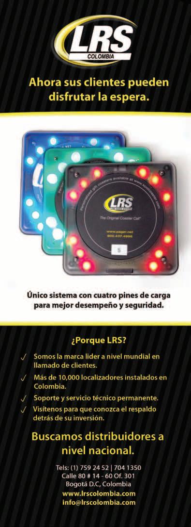 rentabilidad mucho más rápido; garantiza una mayor seguridad en el manejo de la información en el sentido de que la base de datos no puede ser manipulada o modificada por otra persona diferente al administrador. En cuanto al precio, cuesta, en promedio, tres millones de pesos y las licencias de caja, 600 mil pesos cada una. Tres mil restaurantes ya han adquirido esta plataforma entre los que se cuentan Carbón 100, La Bonga del Sinú, Tienda del Café, Olivetto, Gato Negro, El Carnal y Kukaramakara, entre otros.