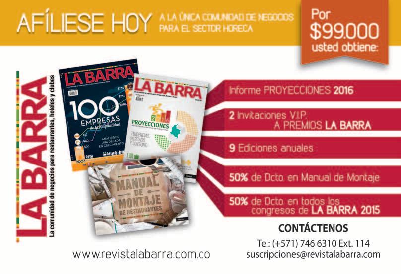 Gerente Canal Hospitalidad VALENTINA TORO Cel: 311 502 53 08 gerente@revistalabarra.com