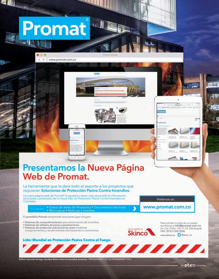 Para entregar información oportuna, actualizada y pertinente sobre productos y sistemas que cumplan con los requisitos de la normativa NSR10, Promat® la empresa líder en sistemas de protección pasiva contra incendios, lanza su nueva página web www.promat.com.co , en la cual también encontrará casos de éxito, documentos técnicos, normativas, noticias y eventos.