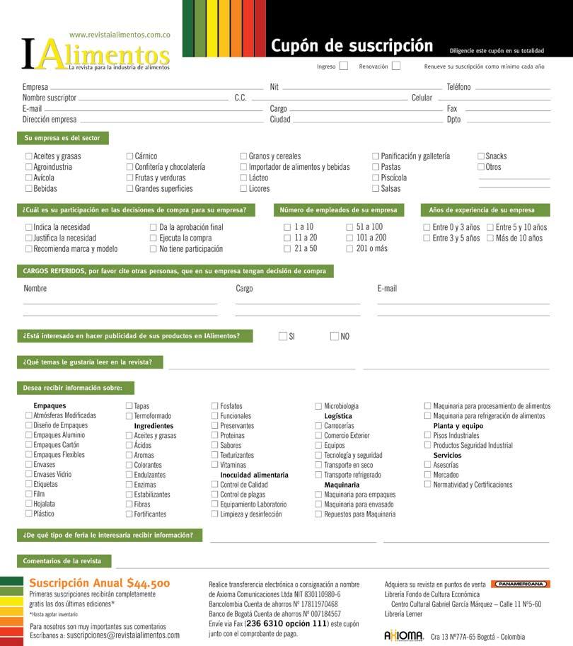 Informes: (571) 2366310 Ext. 251, aquintero@revistaialimentos.com