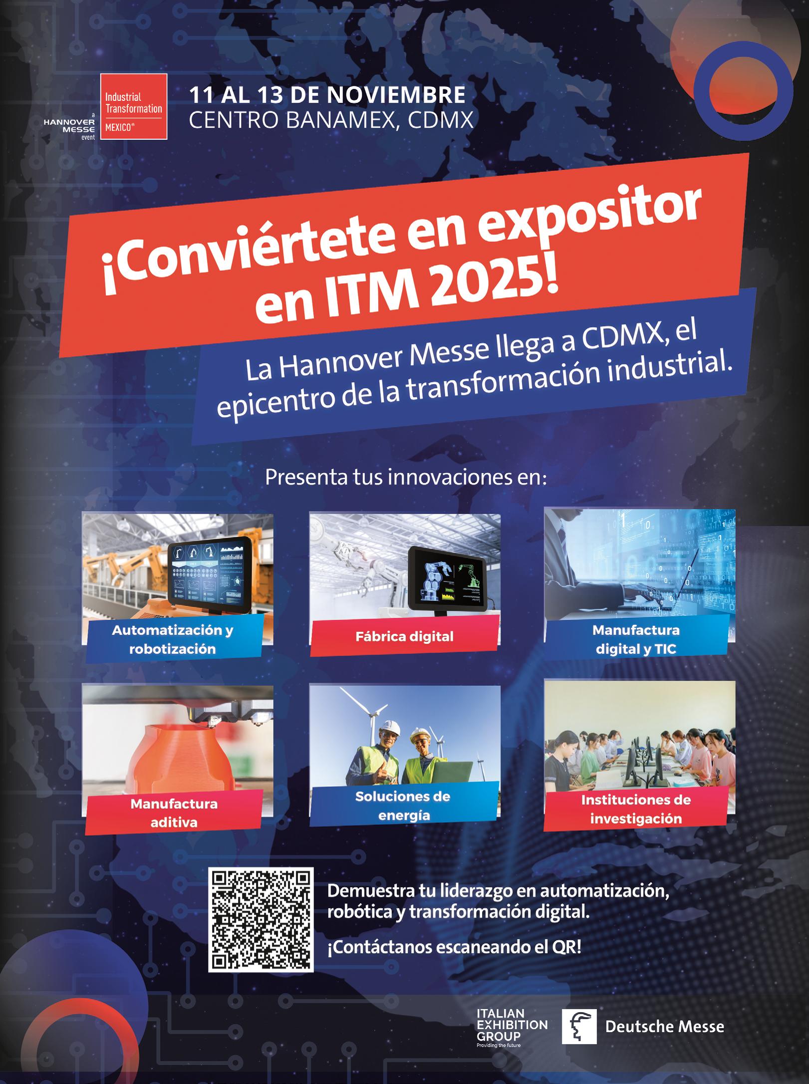 Del 11 al 13 de noviembre llega ITM Industrial Transformation MEXICO 2025 al Centro Banamex de CDMX. Este espacio combina las principales tecnologías y las soluciones industriales líderes, con un programa de educación y una red de contacto completo. Compradores de México y países vecinos, ahora tienen un evento que proporciona todas las herramientas e información que necesitan para digitalizar sus fábricas y plantas.
