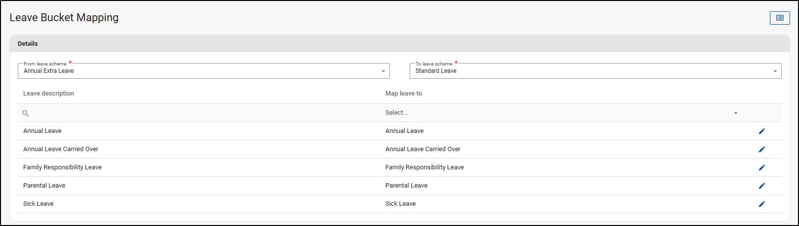 Leave Bucket Mapping