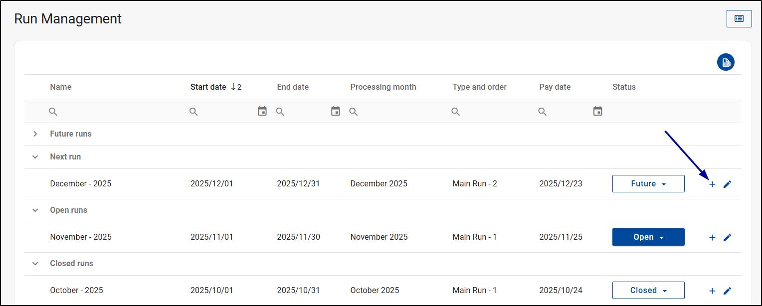 - Adjust run order, including placing interim runs before already closed runs within the same pay period