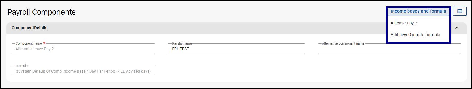Income Base Button – An Income Base button is now available in the top-right corner of the screen. If a formula is associated with a component, the formula name will be displayed first. Below it, users will have the ability to add an override formula where needed