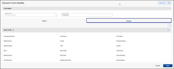 The Dynamic Form Builder will serve as the fundamental tool to populate the sections on the New Hire form, which will be completed by the HR Administrator and New Hire respectively