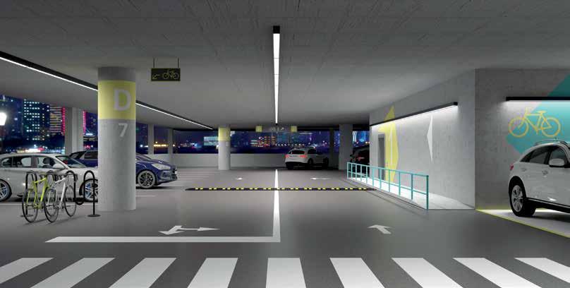 EXTEND 4 Pendant in the carpark combines with EXTEND 2 Wall in the background to enhance private garage spaces.