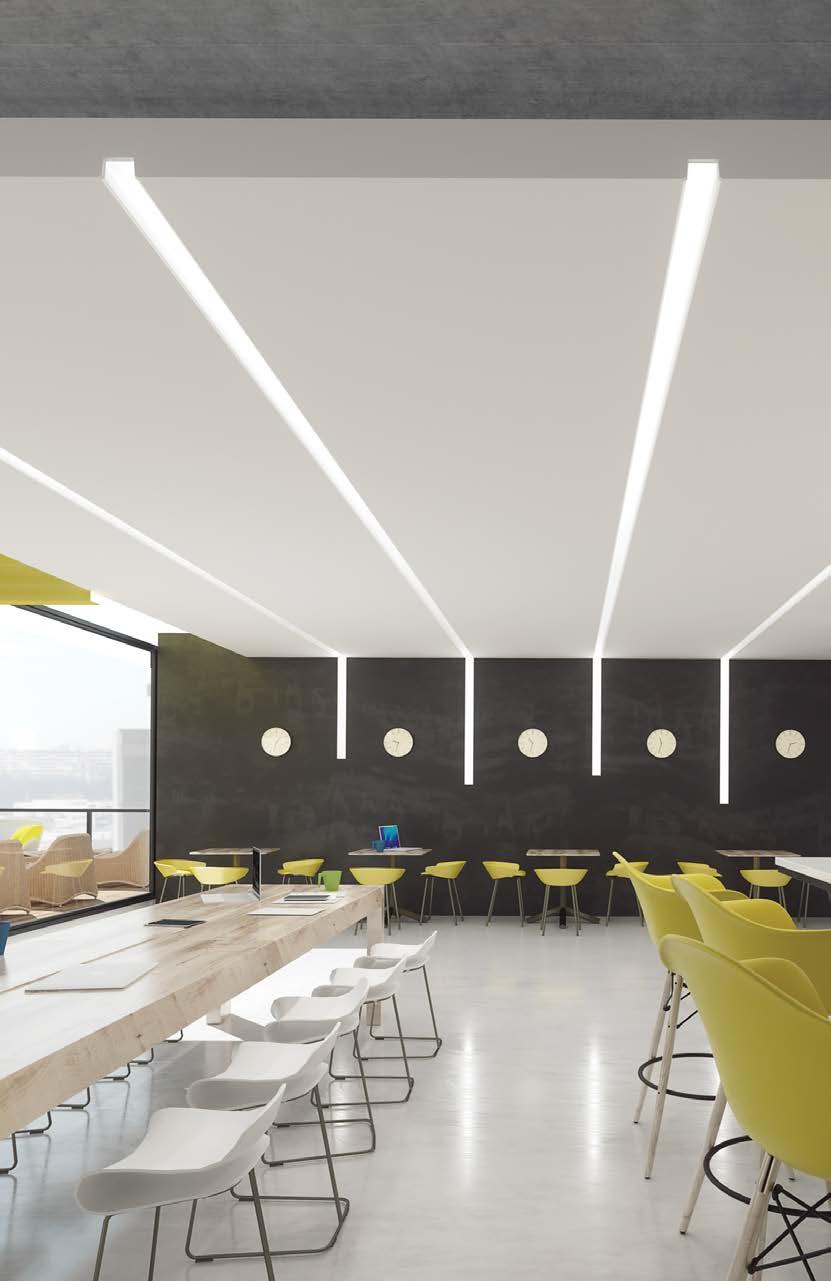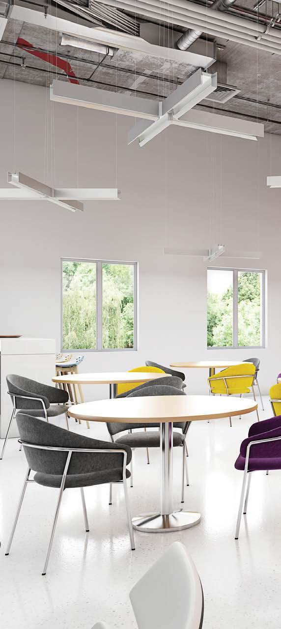 Versions suspendues offertes avec l’optique SurroundLite® à éclairage direct-indirect, assurant un confort visuel supérieur et une efficacité d’éclairage maximale, tout en réduisant le temps et les coûts d’installation.